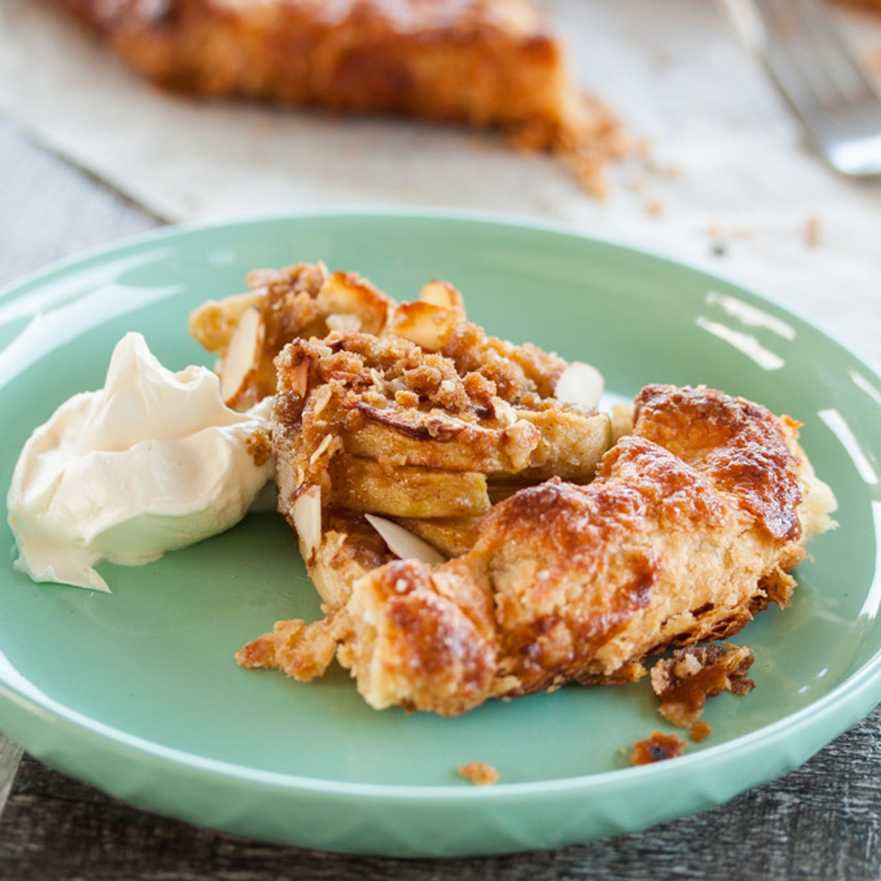 Almond and Apple Crostata recipe (with crumble topping) – sugar, cinnamon, almonds and appled encased in sweet, flaky pastry. By Sugar Salt Magic.