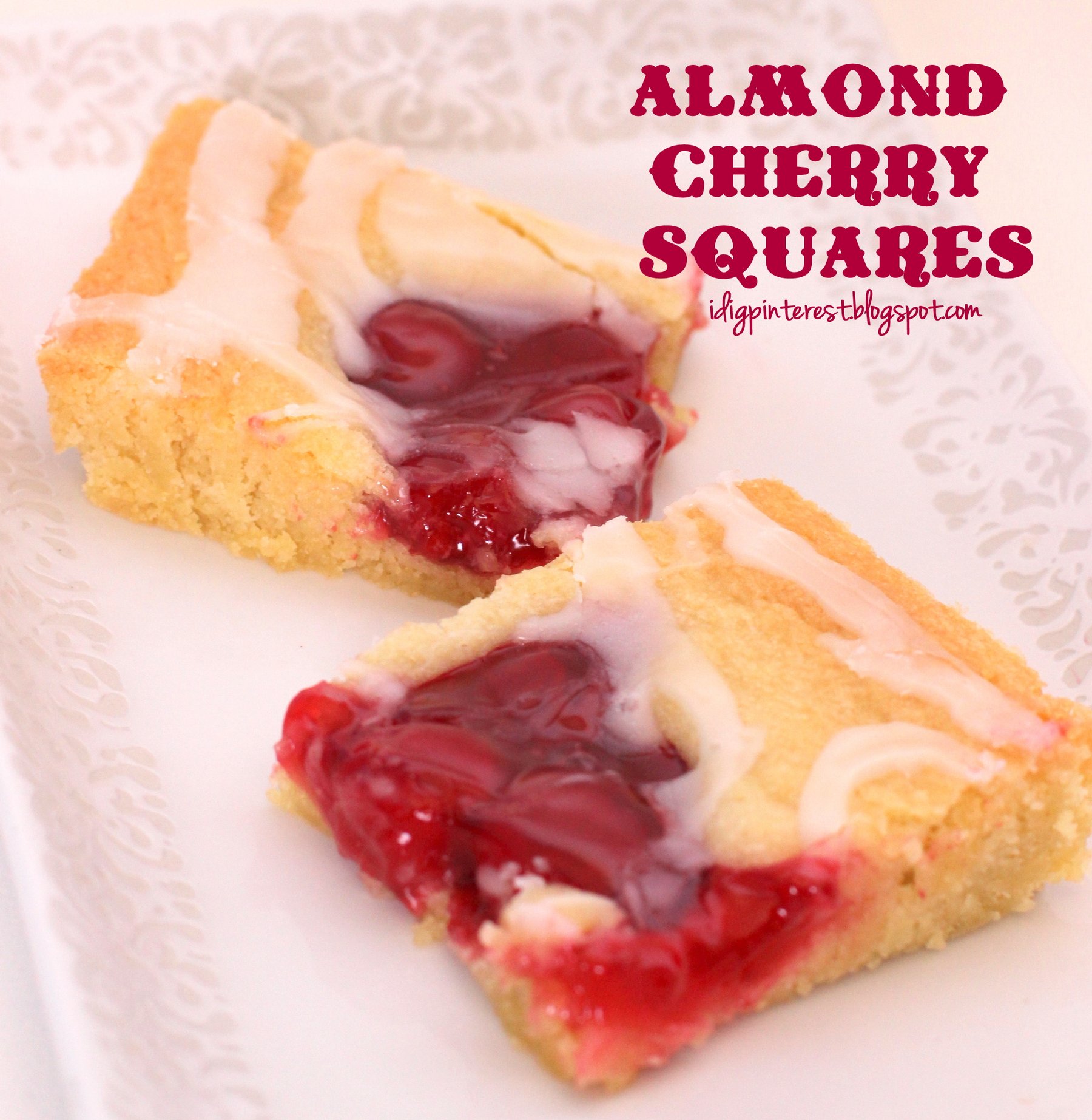 I'm usually a fresh-cherries-only-type-of-gal, but these tasty morsels force me to make a definite exception to my rule. There are no actual almonds involved...only almond extract, which lends a subtle, irresistible flavor to the bars, cherry topping, and glaze. The cherries are little tasty treasures nestled into a soft, sweet, and heavenly shortbread-like base. It's a very visually-pleasing, crowd-pleasing confection.