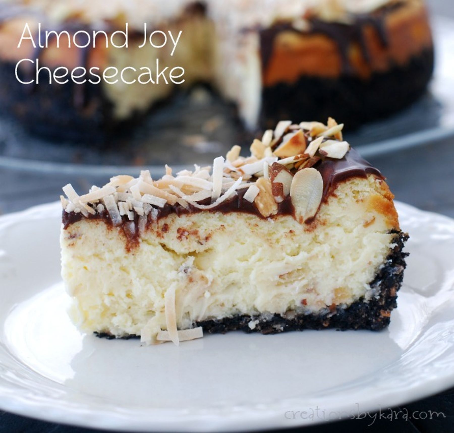 Decadent cheesecake loaded with coconut and almonds and topped with chocolate ganache. If you love Almond Joy candy bars, you've gotta try this recipe!