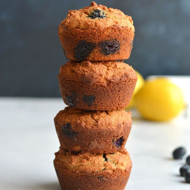Almond Flour Blueberry Muffins! Fuffy, low carb, Paleo muffins lightened up and packed with antioxidant rich blueberries. A high protein breakfast or snack muffin that's nutritious and delicious! Paleo + Low Carb + Gluten Free