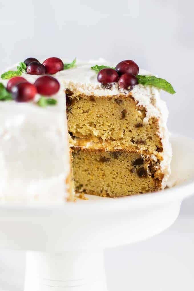 A light and fluffy almond flour cake, stuffed with sweet and chewy figs. The perfect dessert to serve for the holidays — This gluten free cake is also paleo!