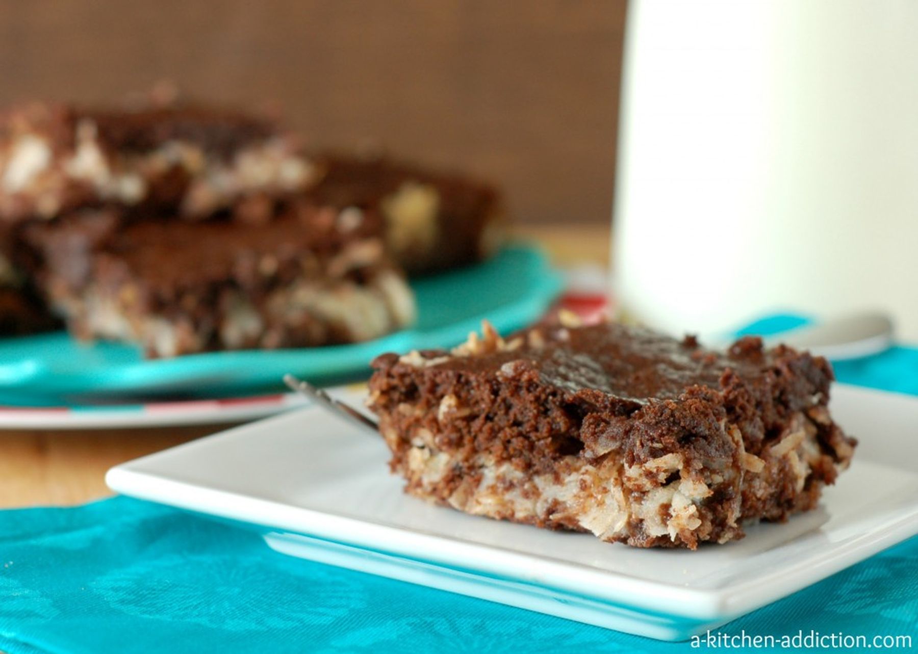 Right up there with chocolate and peanut butter, chocolate and coconut is one of my favorite combinations. I love granola, cookies, bars, pies, etc. that have chocolate and coconut in them! I’ve made almond joy granola bars, but I wanted something slightly more decadent this time. Enter rich, fudgy brownies stuffed with sweet coconut and crunchy almonds!