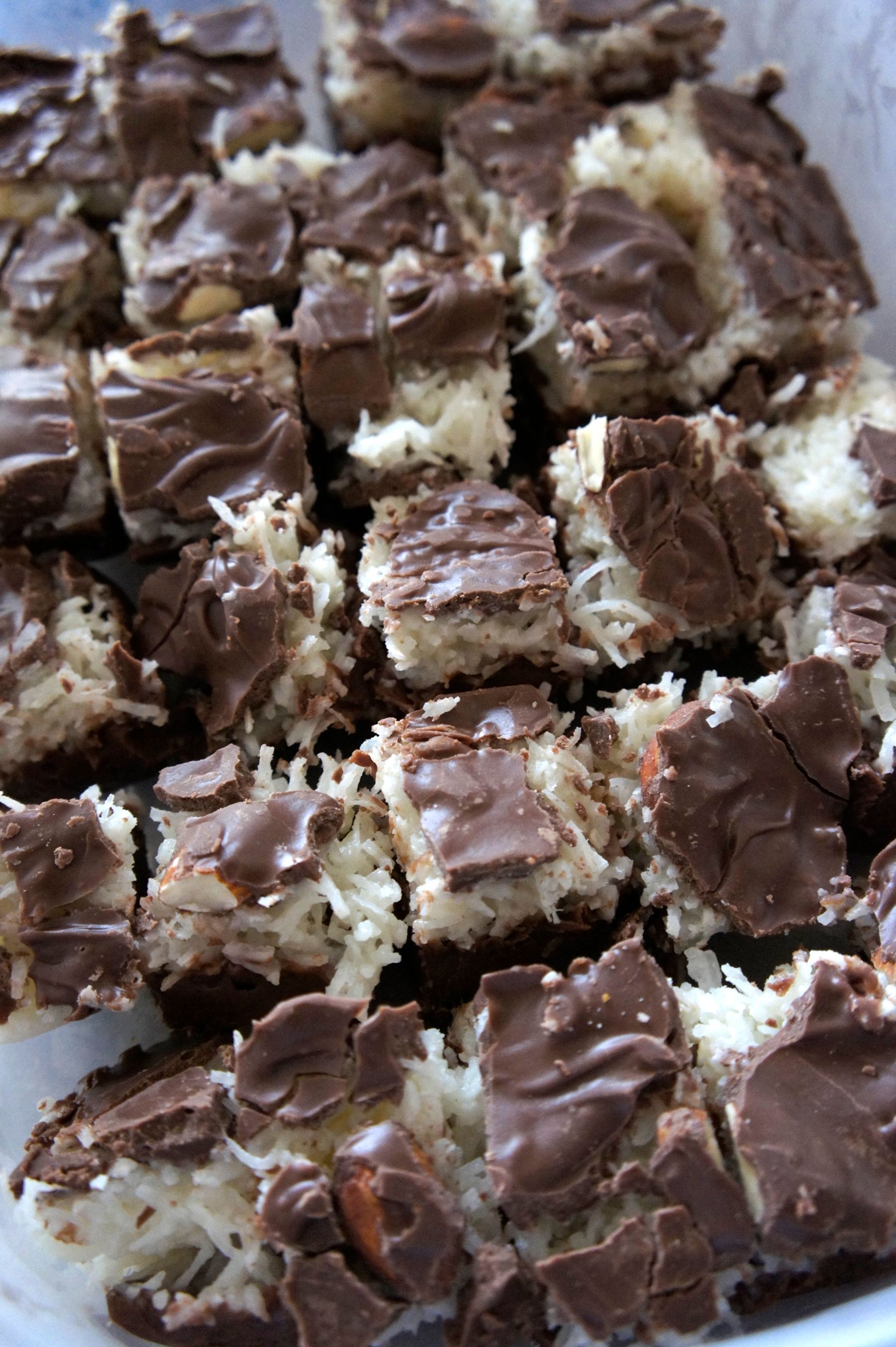 Line a 9x9 inch baking dish with parchment paper and lightly spray with cooking spray.