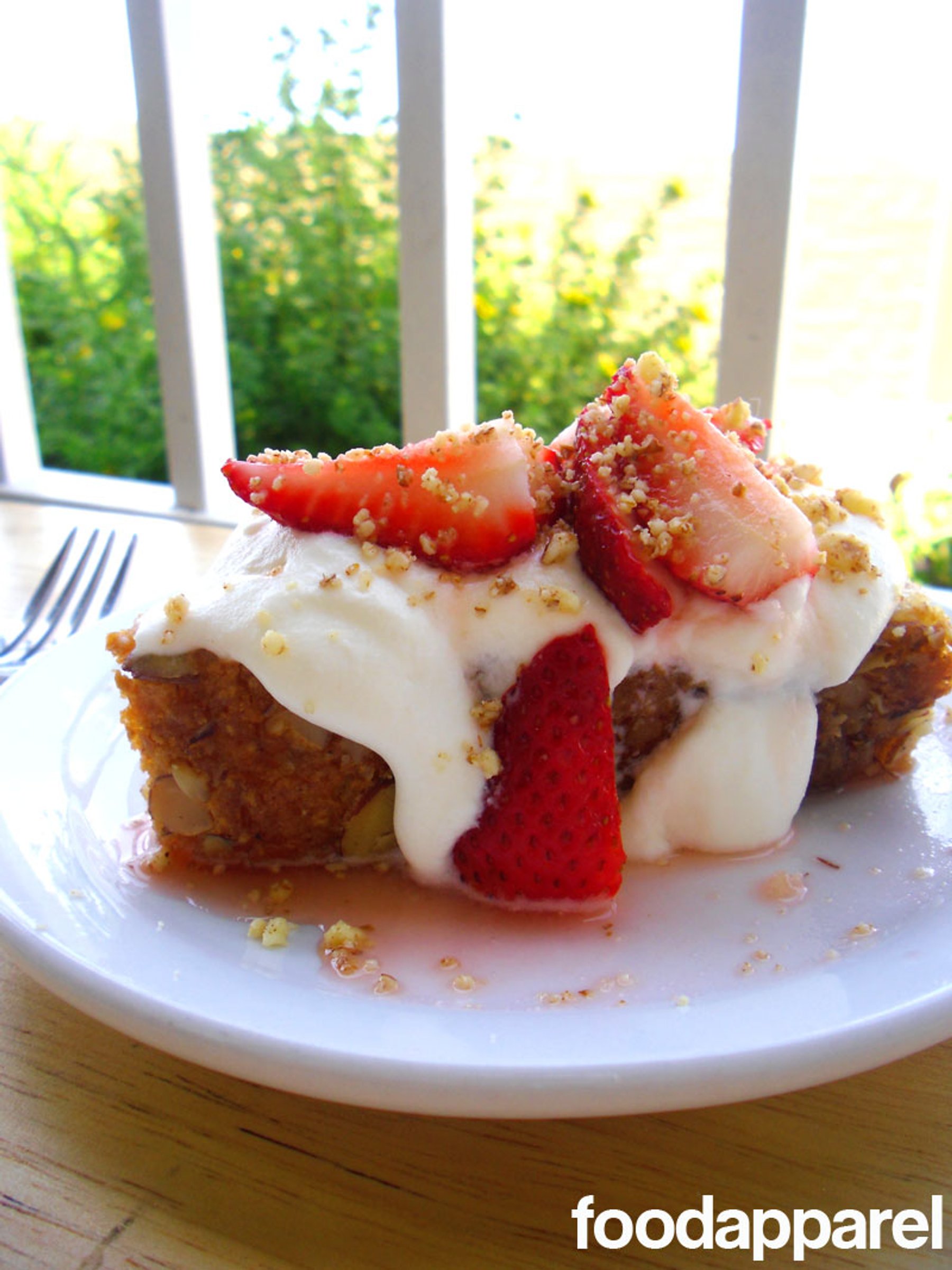 Almond Pound Cake Topped with Strawberries in Lemon Syrup
