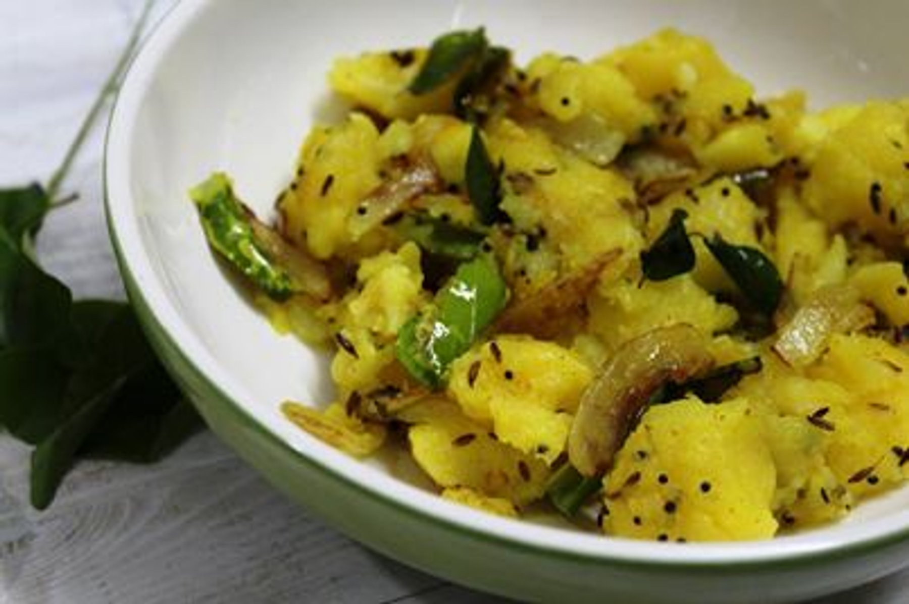 First of all boil potatoes & mash them. Then heat oil in a pot and fry onions till golden. Add potatoes, coriander seeds, green chilli, crushed red chilli, red chilli powder and salt. Mix them and stir...