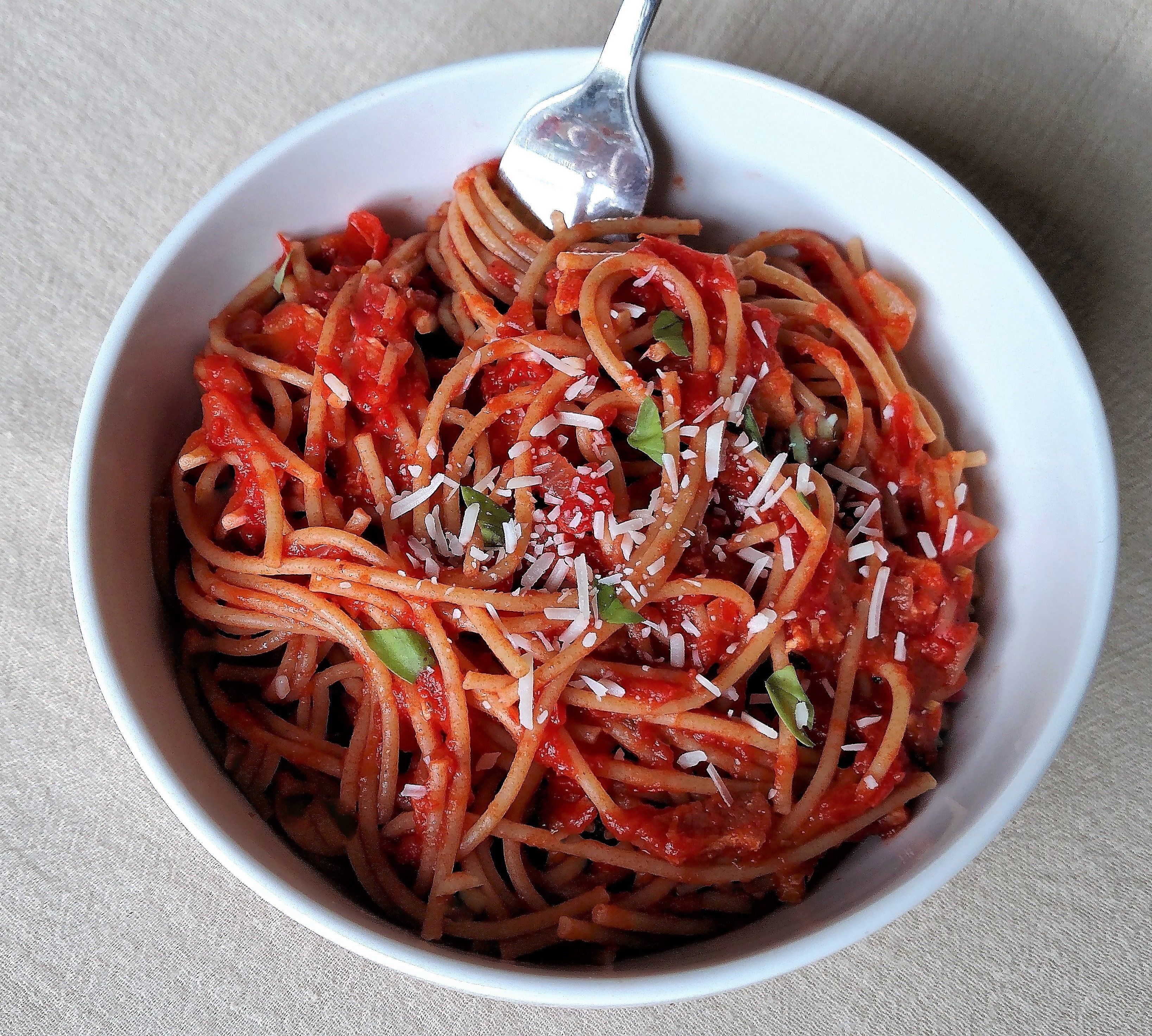 Skip the jar and make Amatriciana Pasta Sauce from scratch. This Italian favorite with bacon, onions, and garlic is sure to be a new family favorite for pasta night!