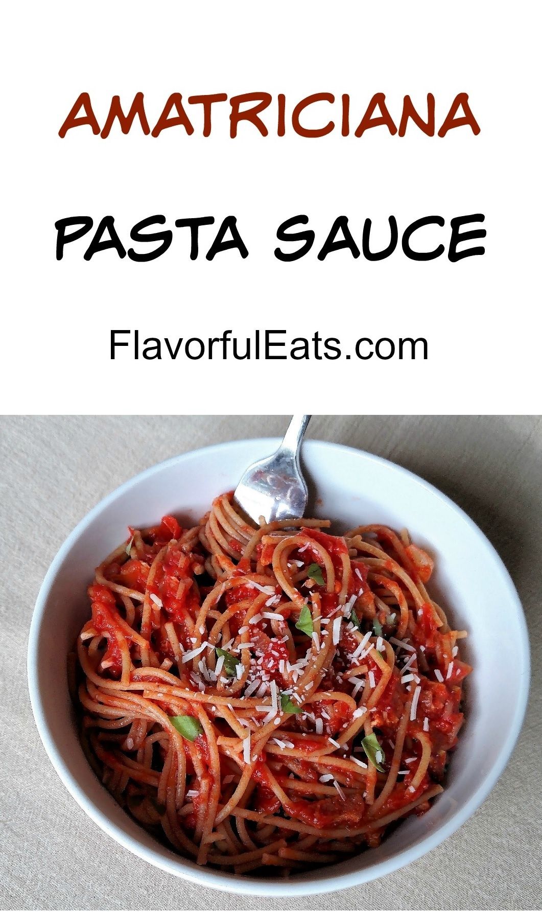 Skip the jar and make Amatriciana Pasta Sauce from scratch. This Italian favorite with bacon, onions, and garlic is sure to be a new family favorite for pasta night!