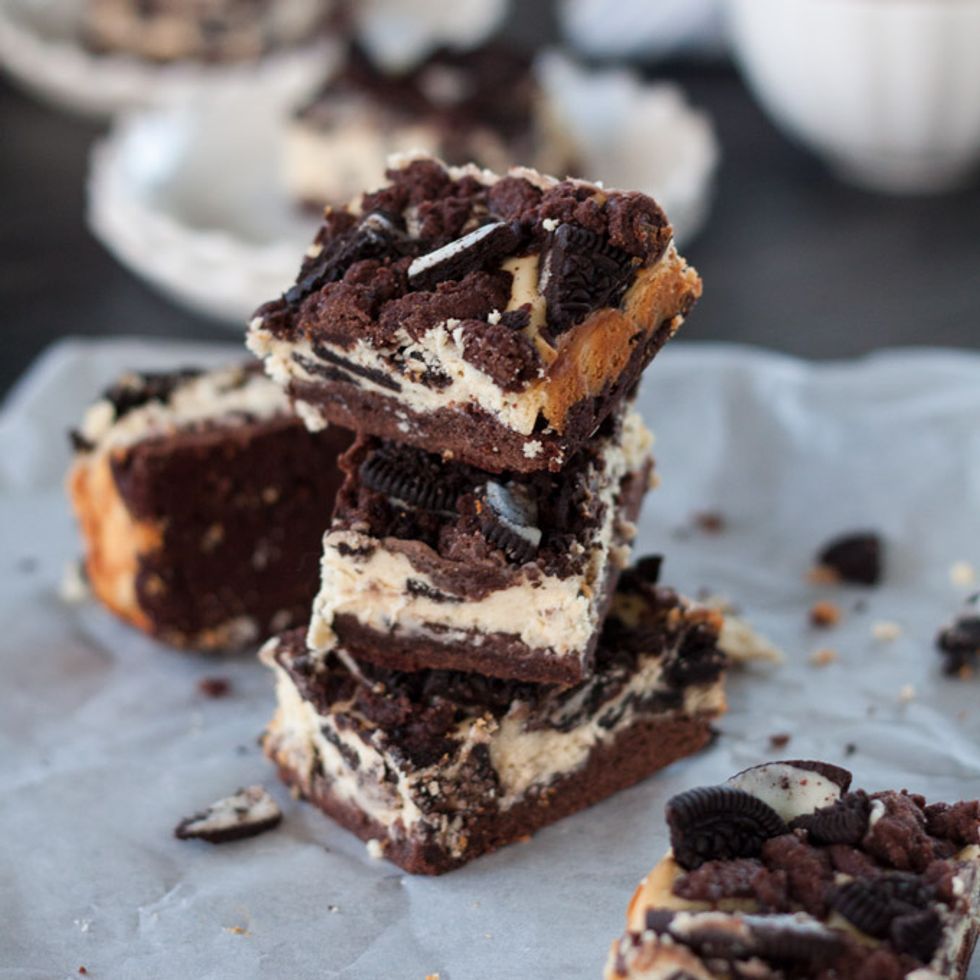 Oreo Cheesecake Bars are little slices of chocolate cookie and cheesecake bliss, topped & filled with oreos.