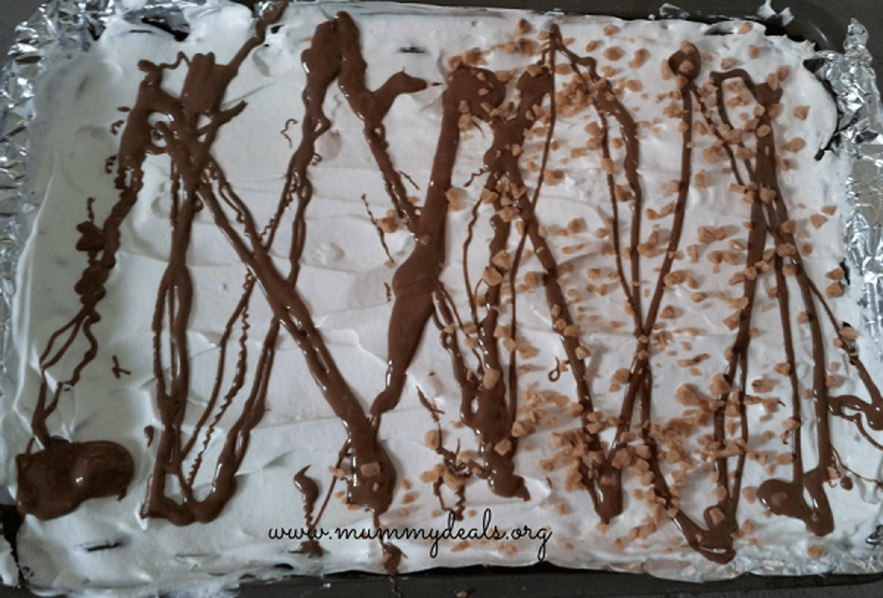 In a spring-form pan spread a little cool whip on the bottom and chocolate chips.