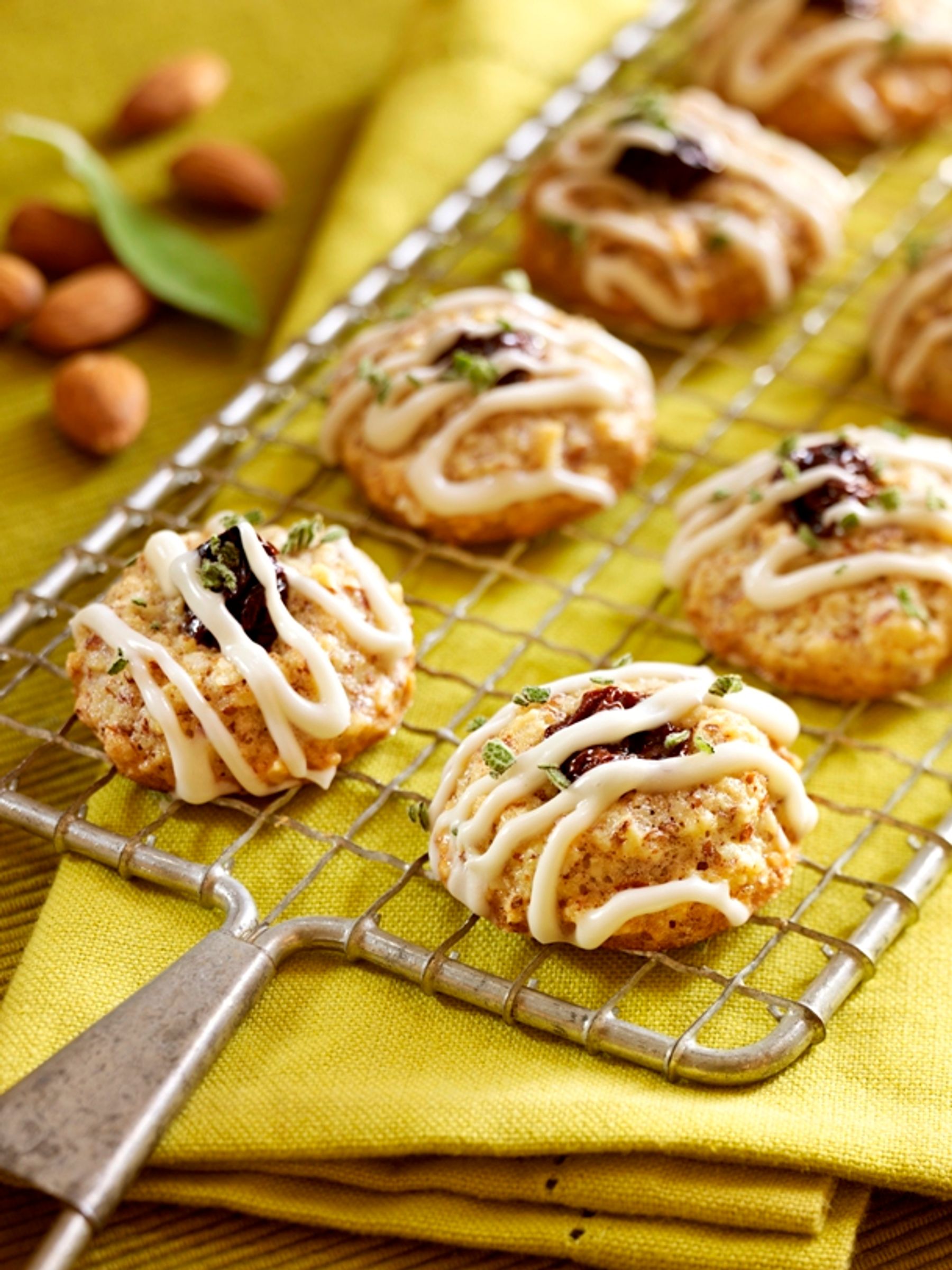 For the icing, whisk all the ingredients until the mixture a smooth and homogeneous. When the cookies are cooled, extend the icing on top and then sprinkle with sage.