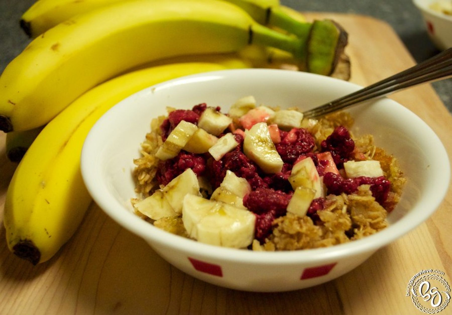 Hand mix together all ingredients in a mixing bowl. Spread into a greased 8×8 baking dish*.