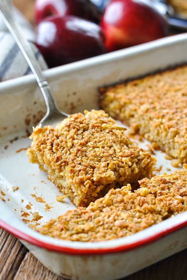 The coziest, easiest make-ahead breakfast casserole — Amish Baked Oatmeal with Apples and Cinnamon! Crisp and caramelized on the edges, soft and fluffy on the inside, this hearty dish tastes like a warm oatmeal cookie! Top a big slice with maple syrup, brown sugar, cream, milk, butter or fruit for a stick-to-your-ribs meal that the whole family will love.