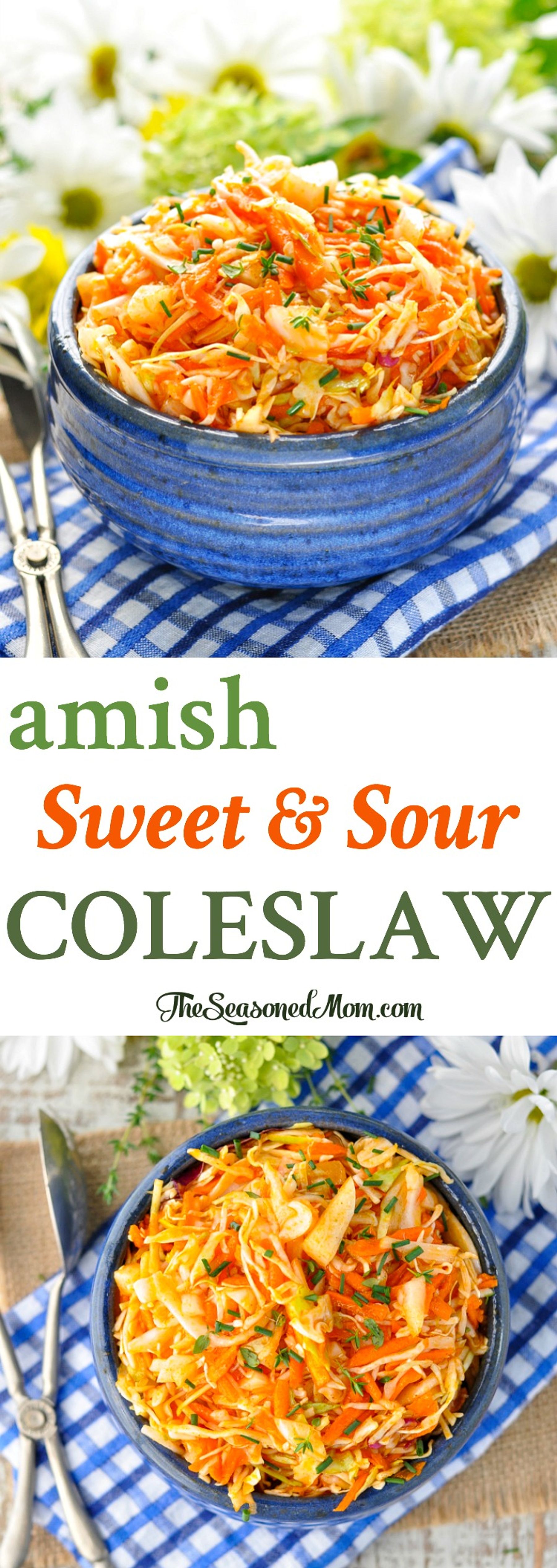 Perfect for a cookout, this sweet and tangy coleslaw is a wonderful complement to grilled chicken, burgers, or other picnic fare!