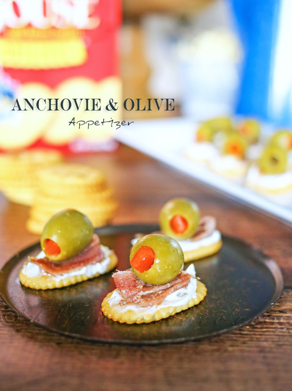 Anchovies & olives with a little cream cheese make these crackers amazing.