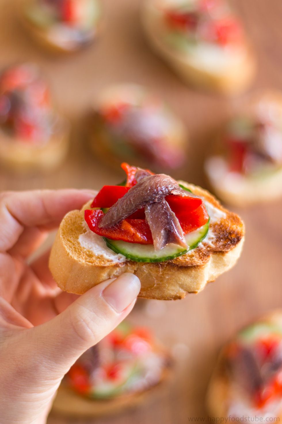 Anchovy Hors d Oeuvres with Marinated Roasted Peppers are little snacks perfect for parties or any type of gathering. Ready in 10 minutes.