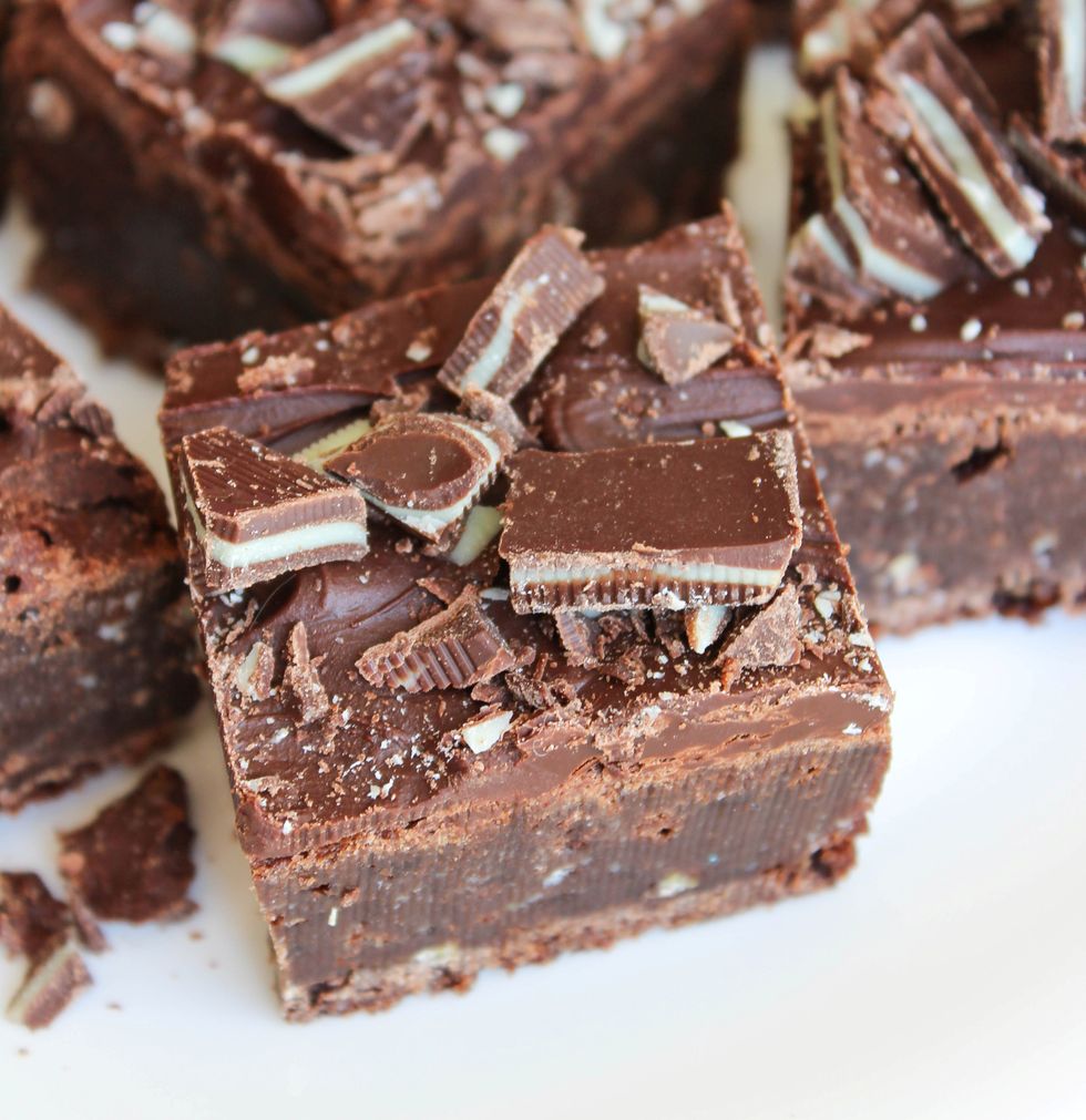 Super decadent brownies filled with mint chocolate, and topped with more mint chocolate!