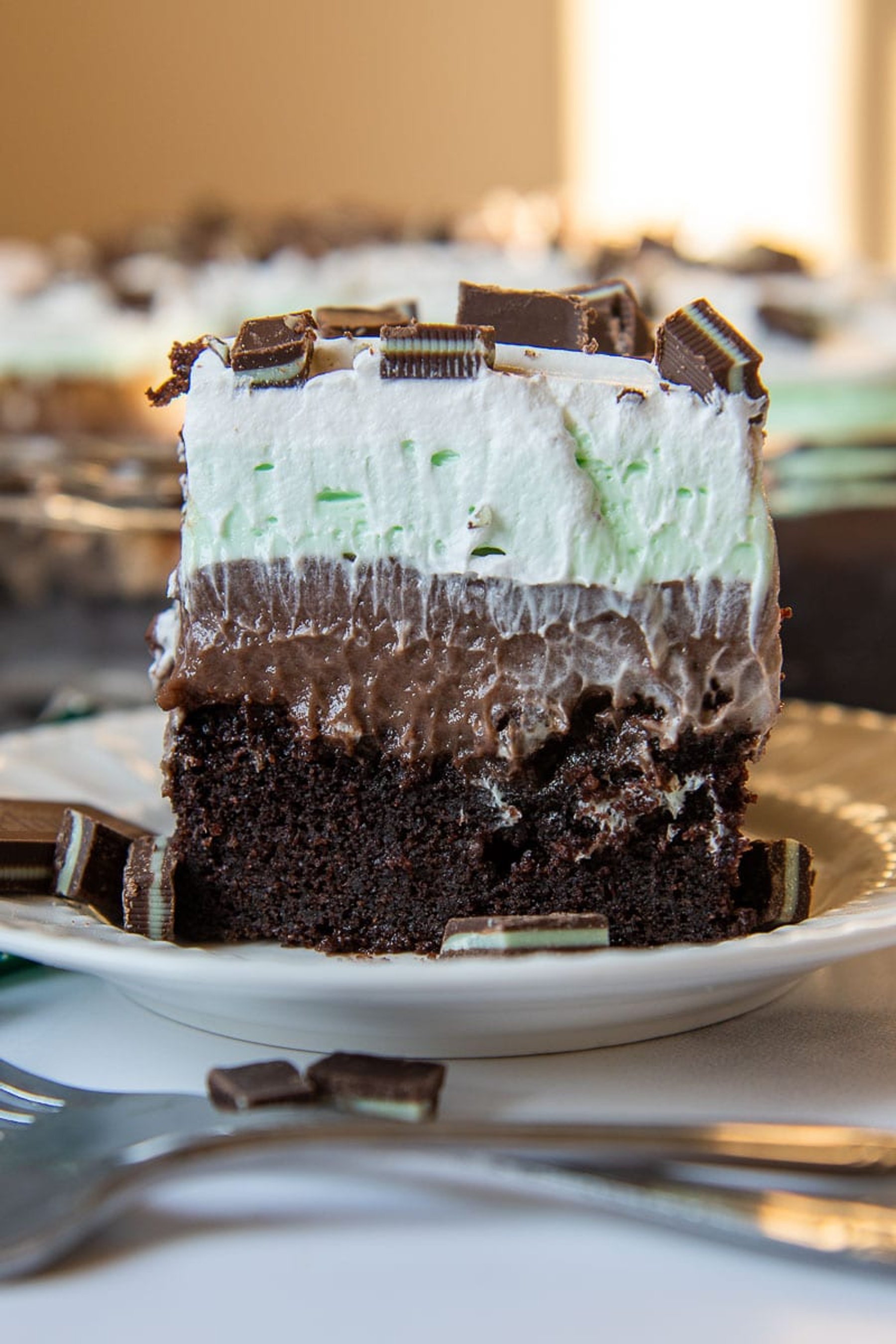 Andes Mint Chocolate Pudding Poke Cake | Easy, Cool, & Creamy Recipe! mamagourmand October 20, 2020 81 www.mamagourmand.com 24 Try it See the full directions on my site Andes Mint Chocolate Pudding Poke Cake is a cool, creamy dessert with chocolate cake, pudding poured on top, and a thick layer of mint Cool Whip topping. mamagourmand.com