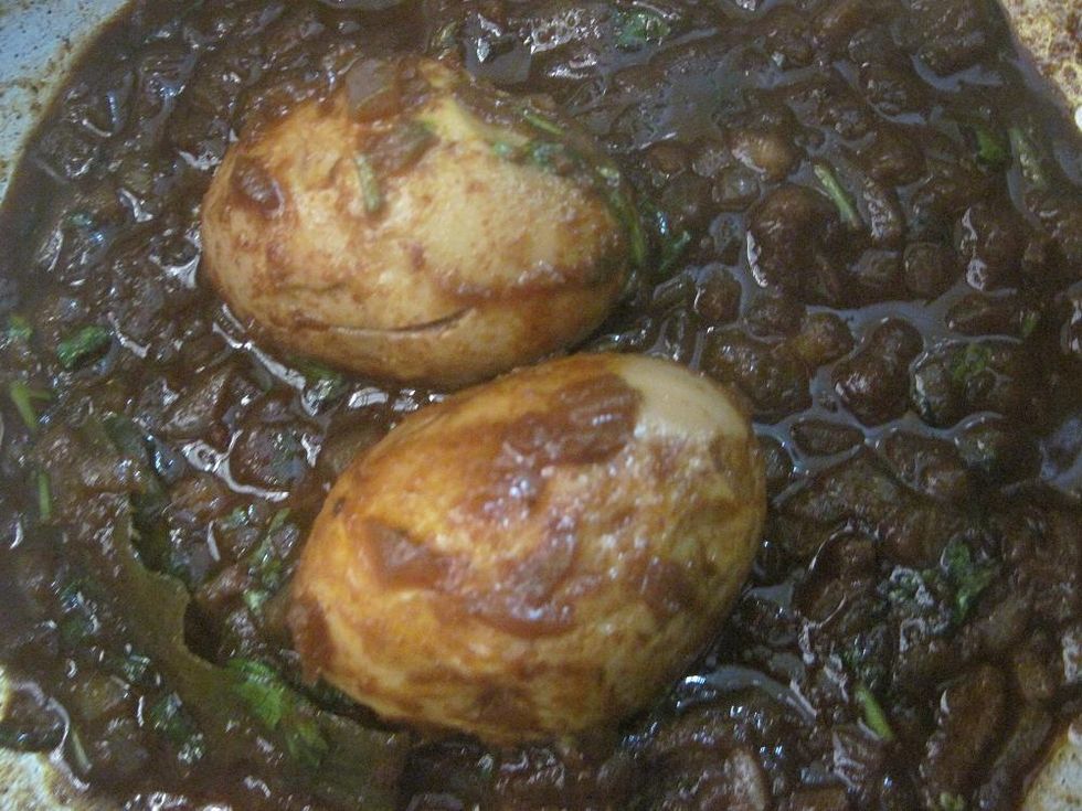 Add fried eggs gently to the gravy. Simmer the flame and cook for 10 minutes or till the gravy is thickened/ oil comes out from the gravy.
