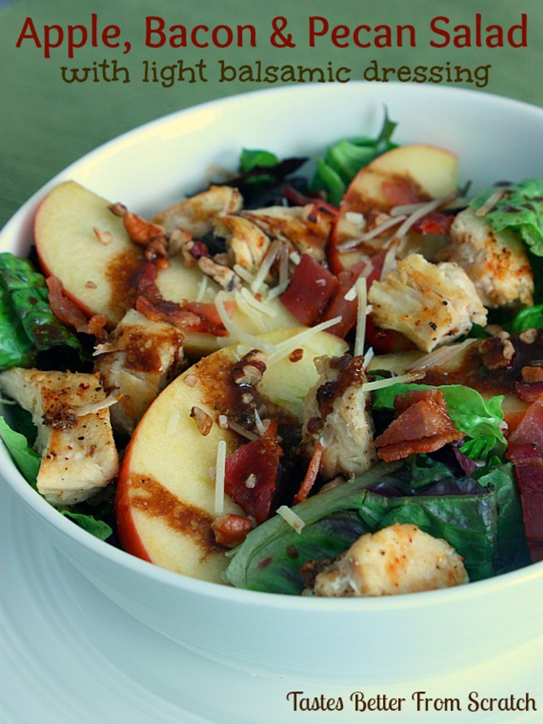 This salad is similar to the Apple Pecan salad from Wendy's that I love....but it's way better :-) The balsamic dressing goes so well with it and adds the perfect sweetness!