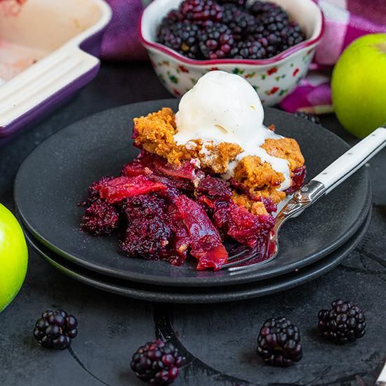 Apple Blackberry Biscoff Cobbler Annie NgaiOctober 25, 2021 984 This Apple Blackberry Biscoff Cobbler is the perfect way to welcome a new season! Tart apples and juicy blackberries are married together and topped with soft fluffy Biscoff cobbler biscuits.8Find the recipe here!See the full directions on my site