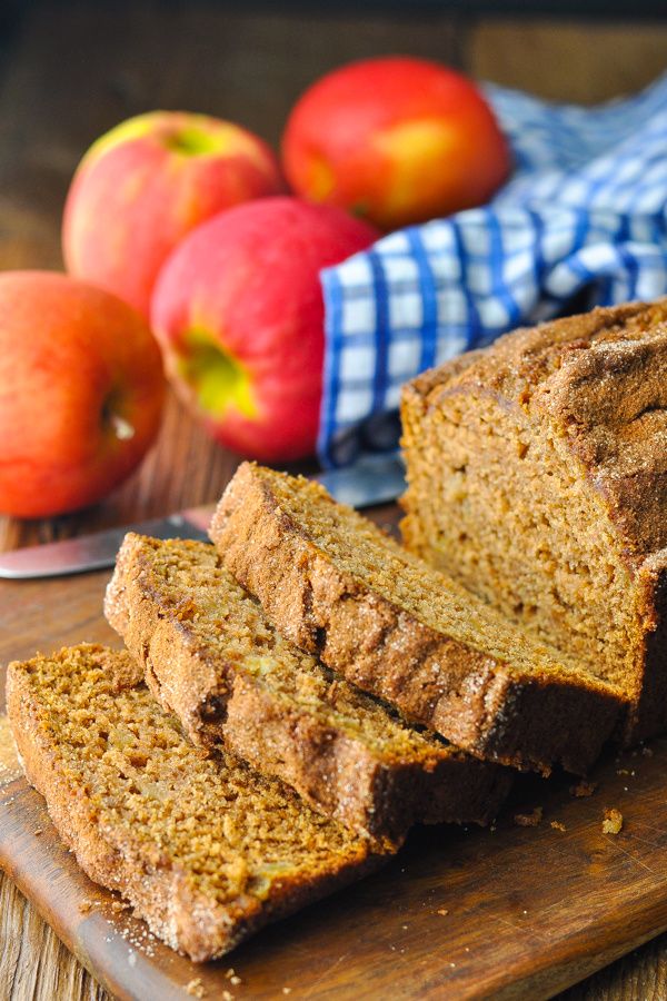 This easy Apple Bread is made from scratch with applesauce, warm spices, and plenty of fresh apples. The moist and tender quick bread is topped with cinnamon and sugar for a delicious breakfast or snack that's ready for the oven in just 15 minutes!