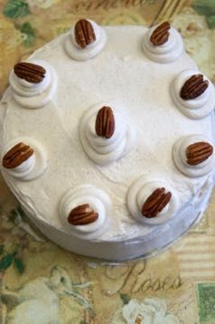 A spice cake made with apple butter and then frosted with a cinnamon cream cheese frosting.