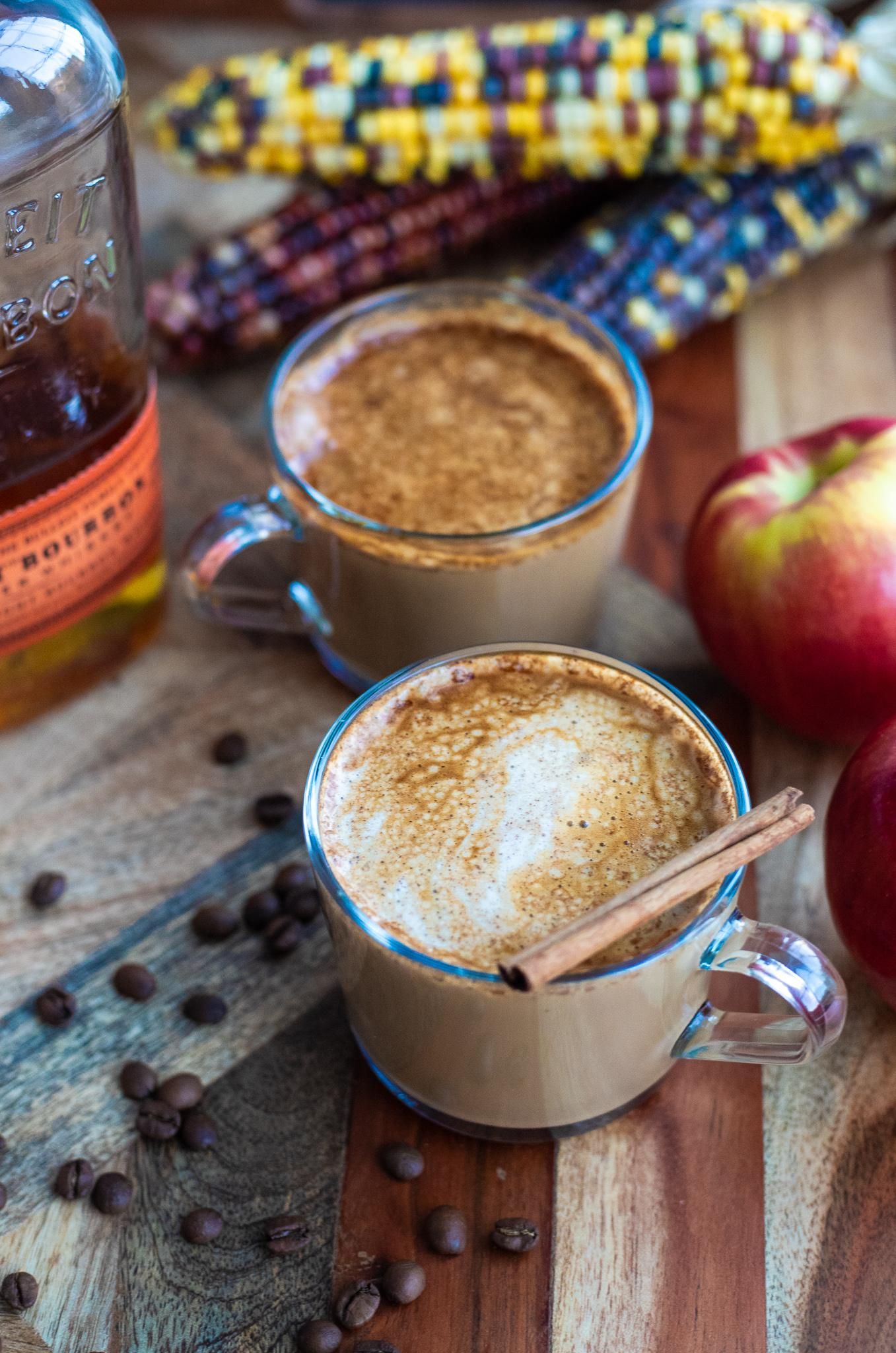This apple cider bourbon latte is made with espresso, milk, apple cider, bourbon, cinnamon, and nutmeg. It's the perfect combination of fall flavors, and it's oh so cozy. It's a great way to use up all the apple cider you bought when you were apple picking.