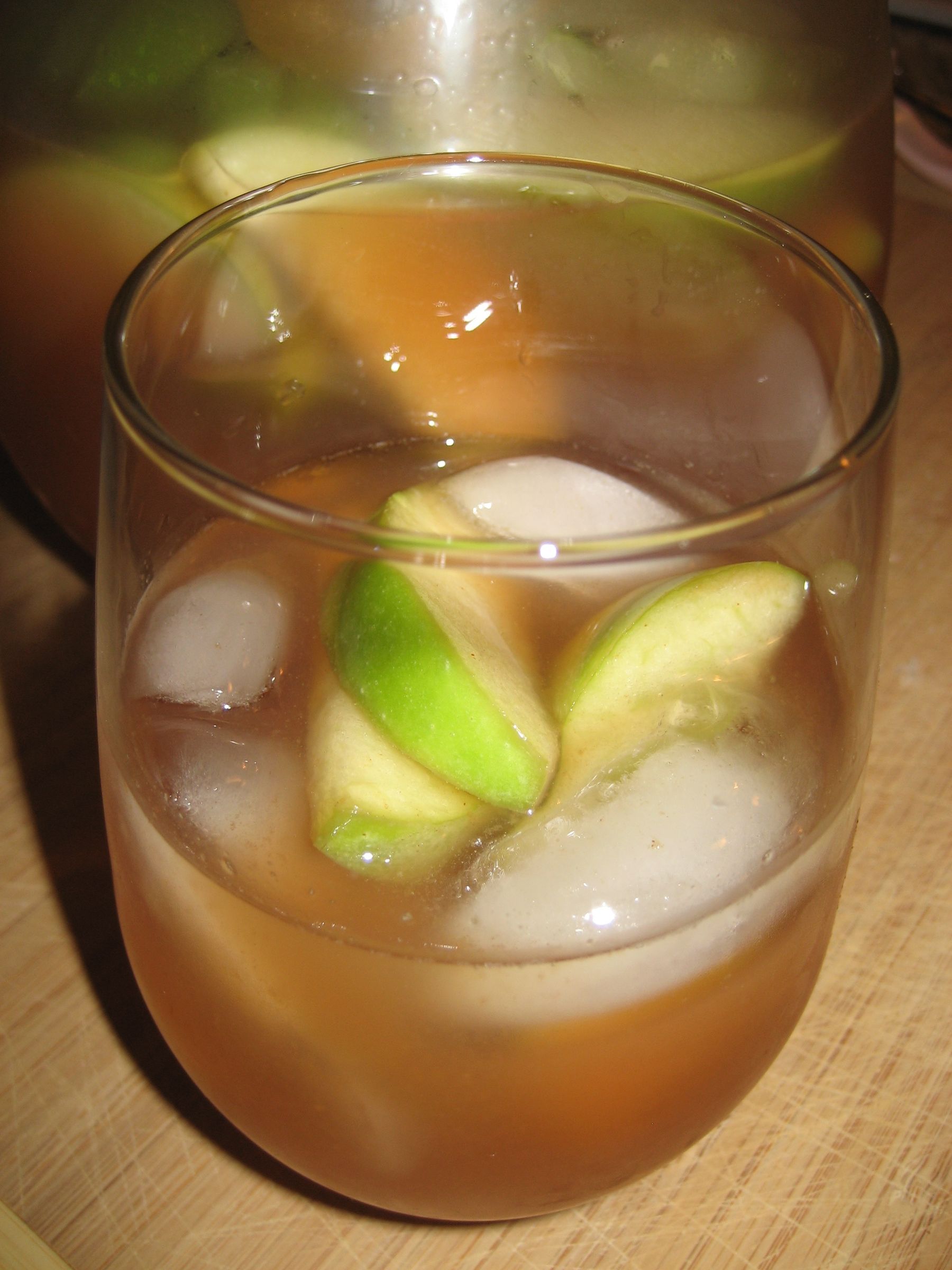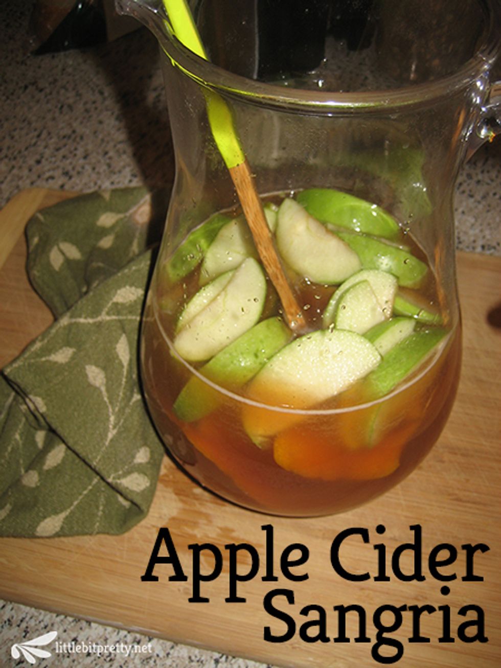It doesn’t seem quite right to me to have light and bright lemon/lime/white wine & ginger ale sangria in the fall. That seems more poolside appropriate & I need something that’s more soupside appropriate. Well check out this delicious fall favorite: Apple Cider Sangria!
