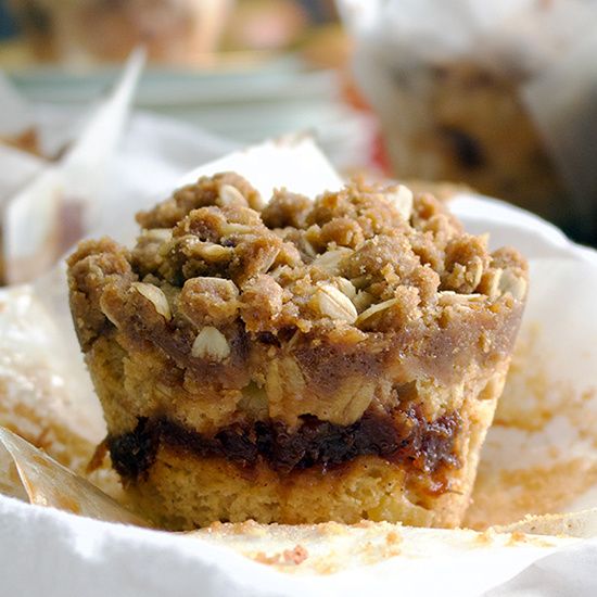 Tender cinnamon-spiked muffins studded with chunks of fresh apples and a gooey apple butter center, then topped with buttery streusel. Get the recipe: ofbatteranddough.com