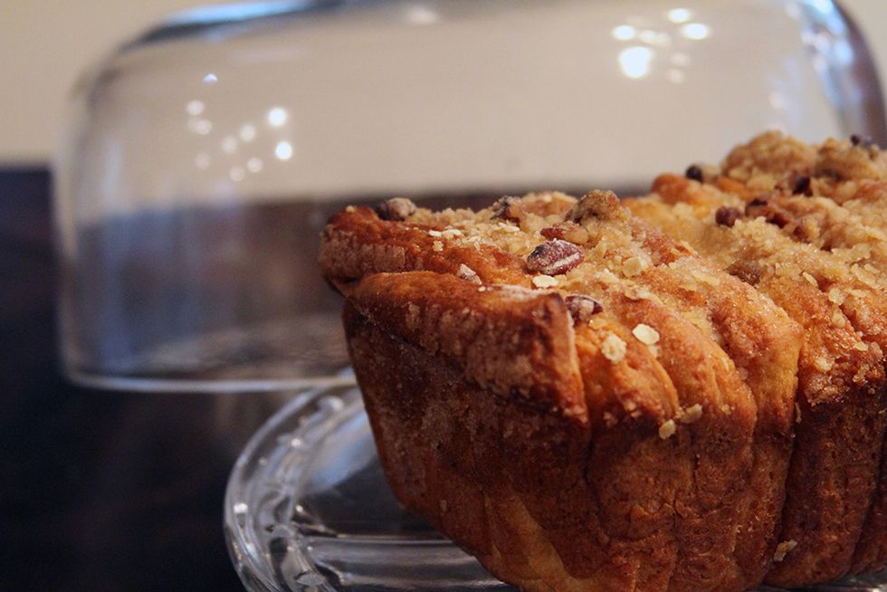 Warm and delicious cinnamon bread stuffed with warm apples. Its fall in a bread pan.
