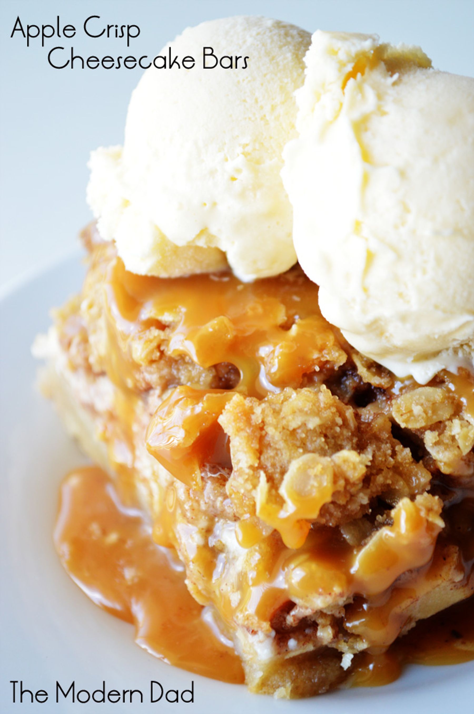 Between the rich flavors of salted caramel, apples, and cinnamon to tempting layer of cream cheese and chunky oat crumbles, this will be your new favorite apple bar recipe - apple pie, apple crumble, and cheesecake all in one.