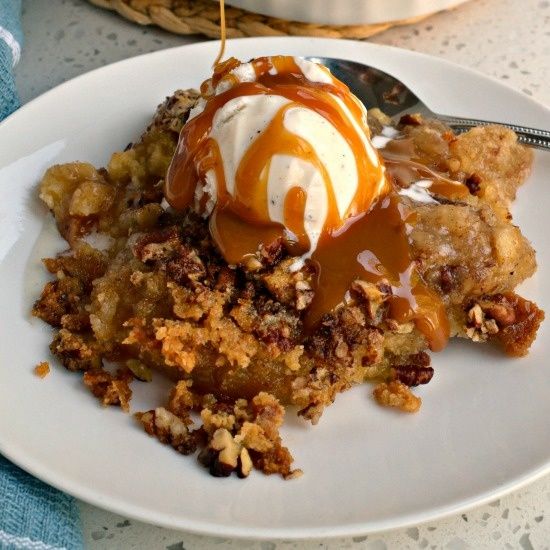 This super quick and easy scrumptious Apple Dump Cake is sure to please all of the apple lovers in your life. For an over the top dessert serve a la mode with warm caramel sauce.