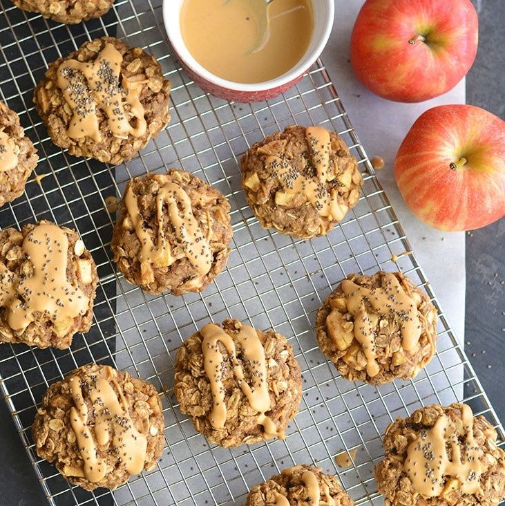 Apple Peanut Butter Cookies made with flax, chia and oats. A low calorie, gluten-free & vegan friendly snack that's easy to make & a nutritious treat! Gluten Free + Vegan + Low Calorie