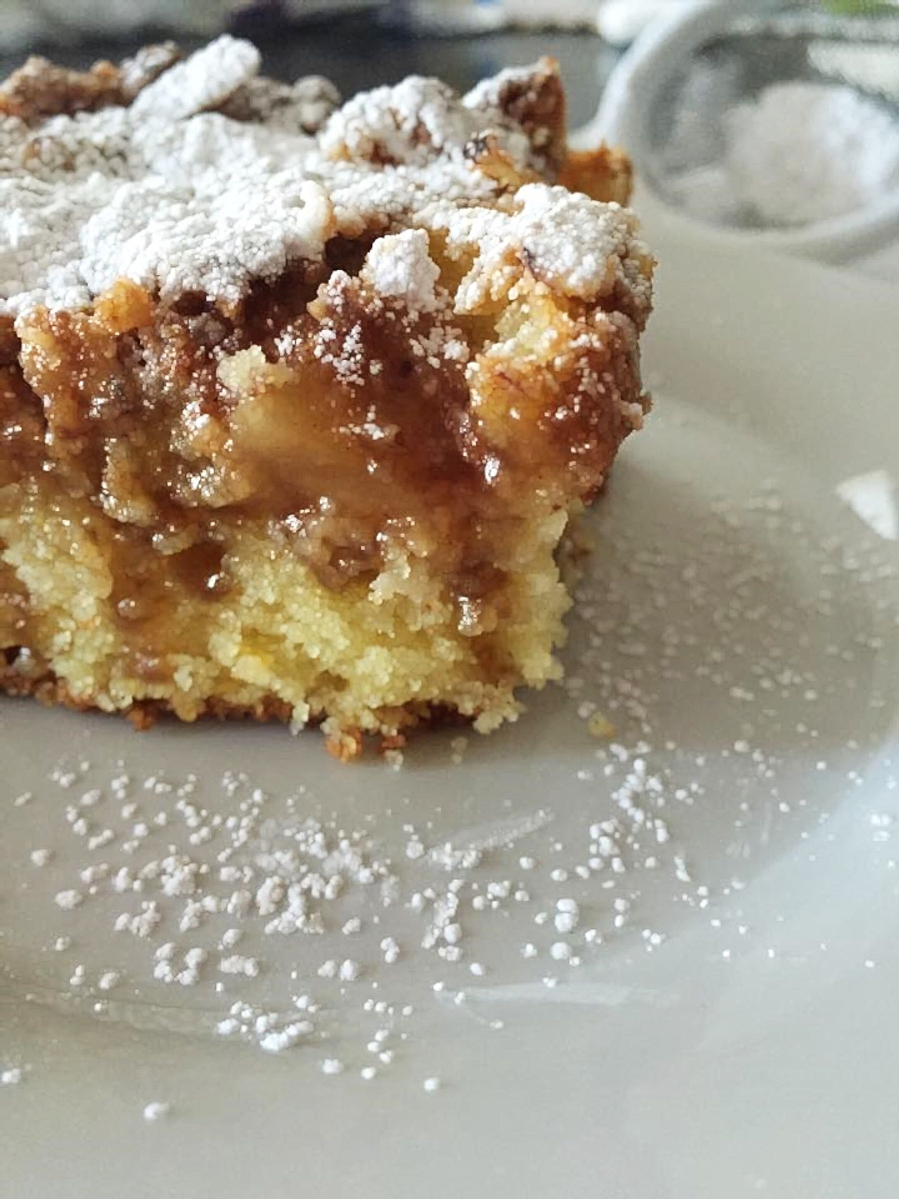 Once you sink your teeth into it,first you hear the crunchy crumble on top. Then you are getting deeper into the soft but not mushy ,perfectly spiced apples and finally to the fluffy,airy,like a cloud in your mouth,cake. Not overly sweet,the spices and apples marry so well together and the hint of orange brightens the cake. You can\\\'t deny a piece of cake like this!