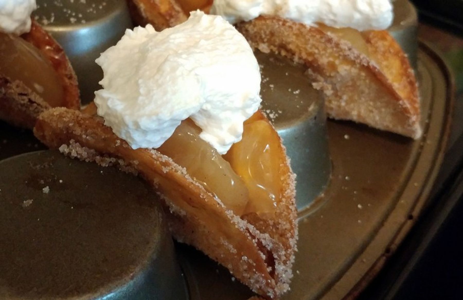 Bite sized apple pie in crispy cinnamon sugar tortillas.