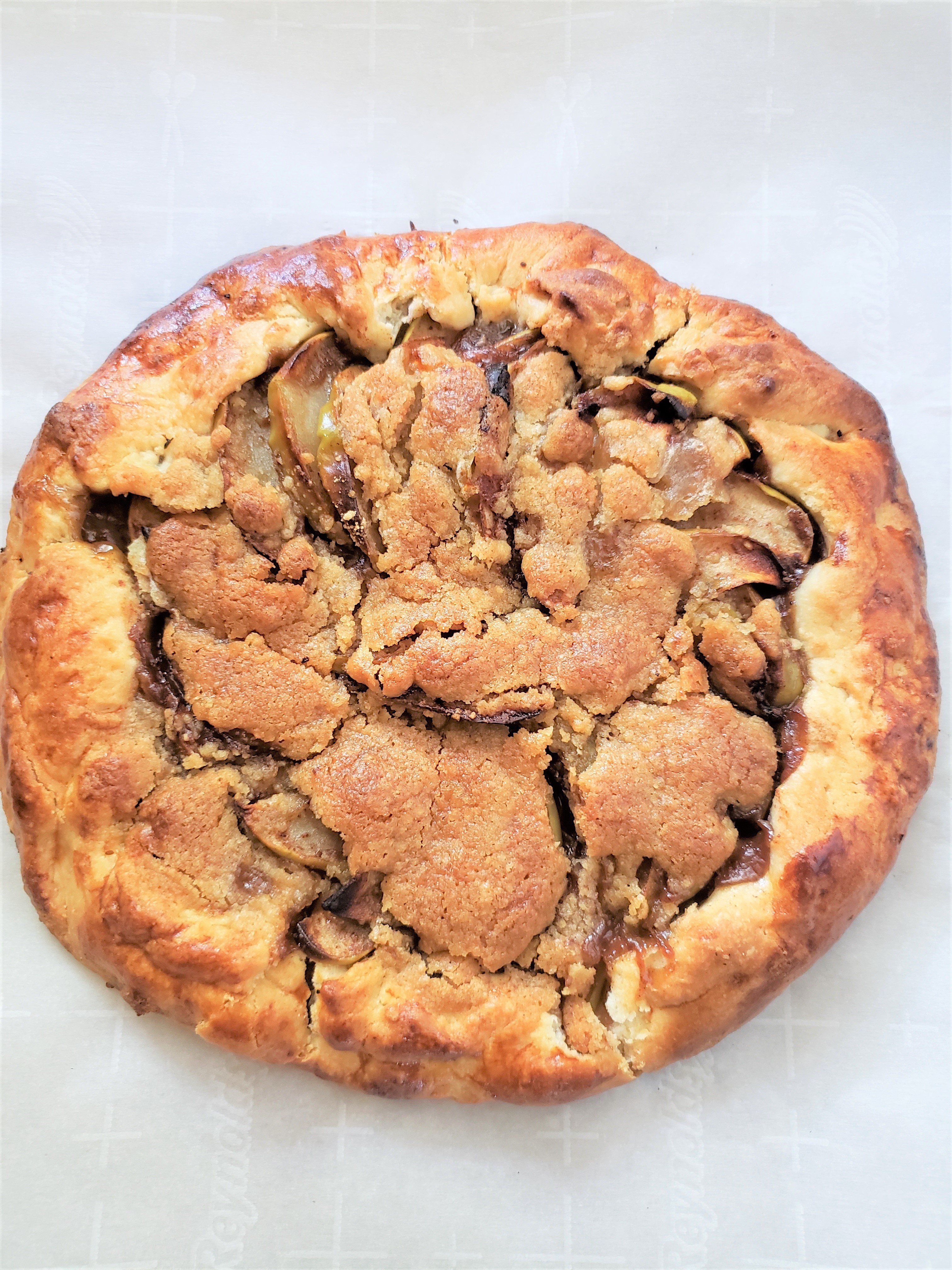 A pastry filled with cinnamon apples and finished with a crumbly streusel topping