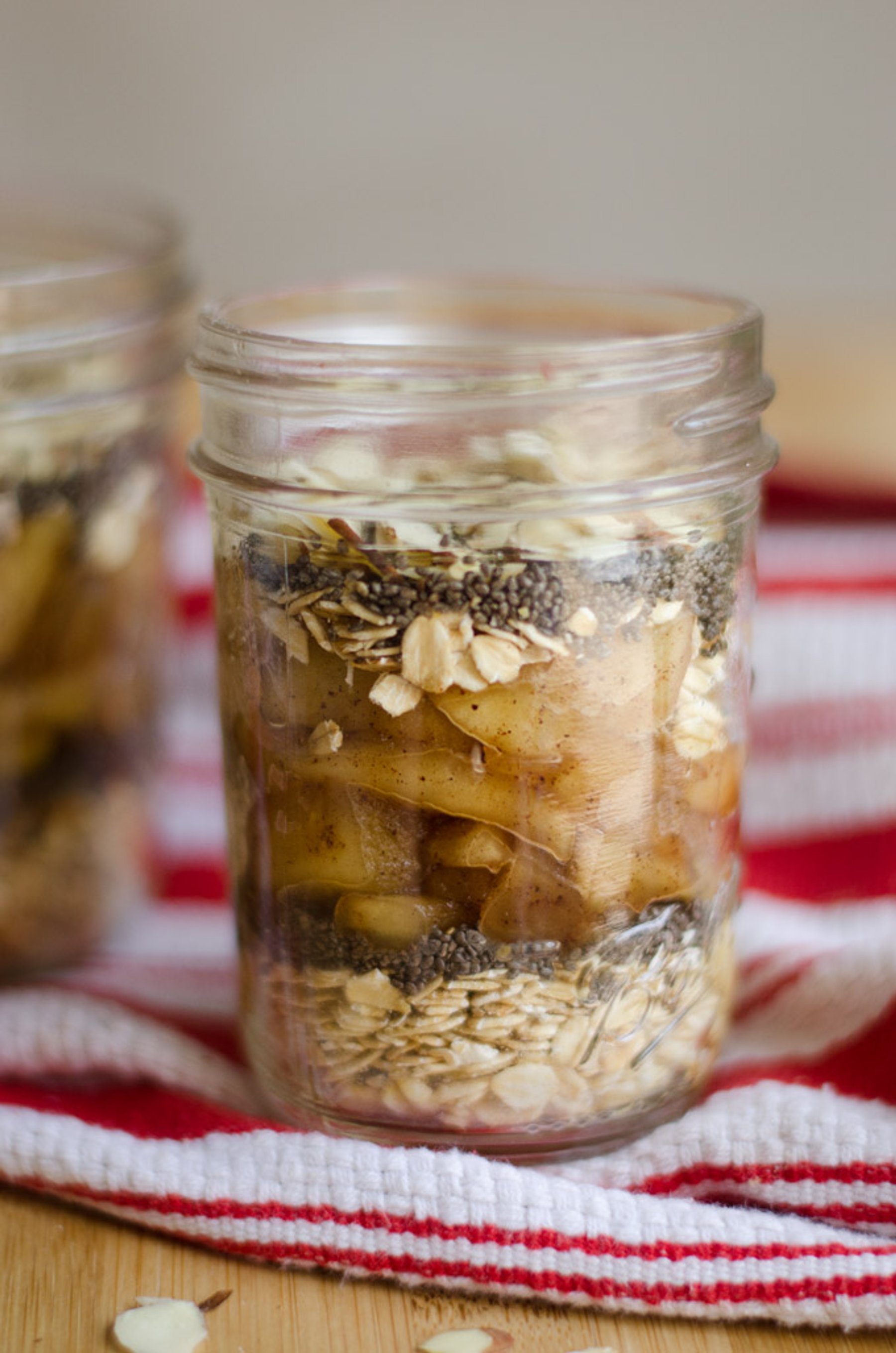 In a medium stockpot, mix and cook all the “Fruit” ingredients over medium heat until soft, about 20 minutes. Measure out all ingredients then layer into a glass jar or bowl a scoop of the oats and chia...