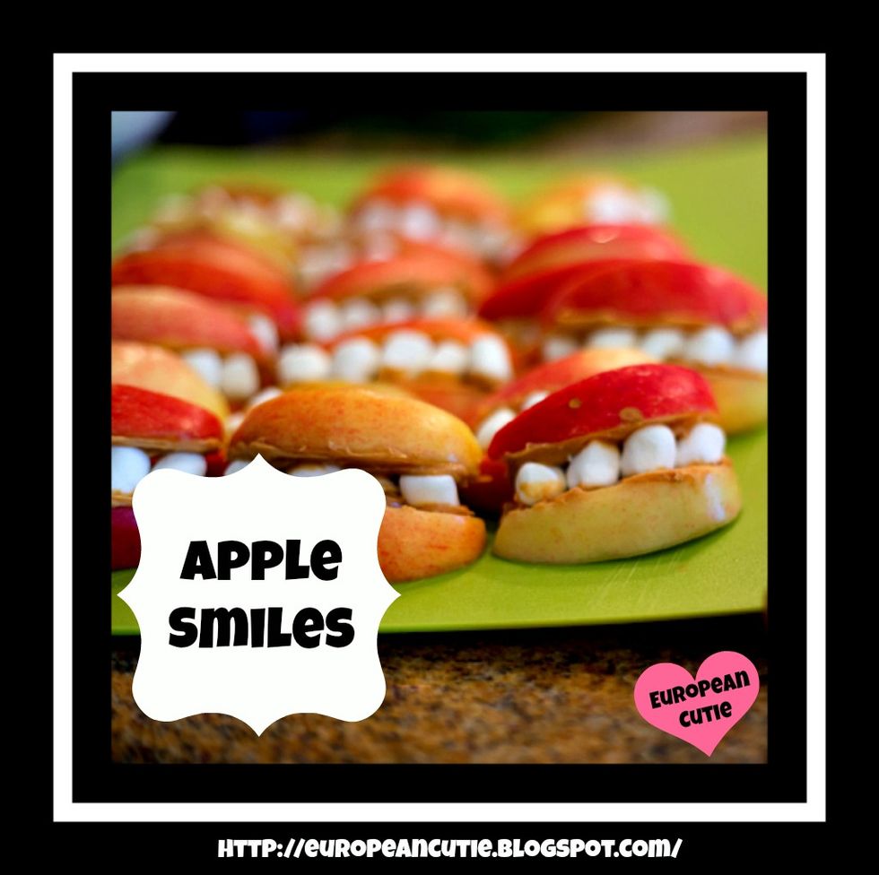 Here is a supercute healthy recipe using low sugar peanut butter for apple smiles!