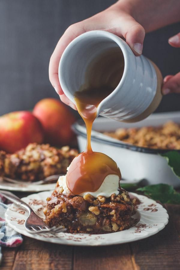 This fresh Apple Walnut Cake with a buttery caramel glaze has all of the warm spices, toasted nuts, and sweet fruit that you crave in a cozy fall dessert. Serve the old-fashioned caramel apple cake with a scoop of vanilla ice cream or a dollop of whipped cream for an easy, festive addition to your next meal. It's moist, gooey, and perfect for the season!