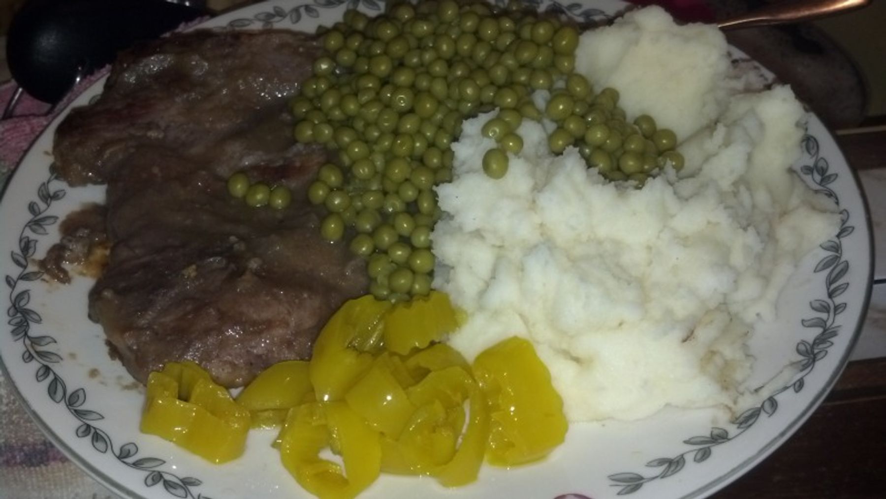 I made Applesauce Pork Chops, Mmmmm these are tasty Good. Fruit with a blend of Cinnamon and Nutmeg, cook that up in the Pan and serve it with Garlic Mashed Potatoes and a side of Peas. That's good food.This is so easy and takes very little ingredients.