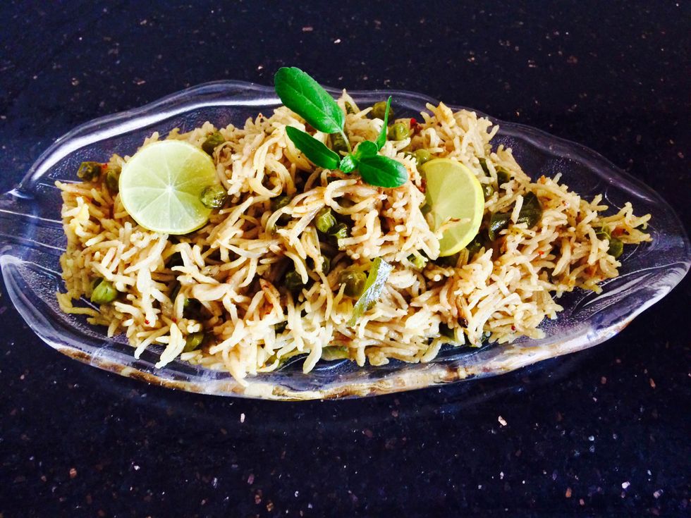 A beautiful rice preparation where a perfect marriage between aromatic indian spices and fluffy rice takes place. It is scrumptious, mouth watering and extremely mouth watering. A hint of lemon scent hits the nostrils as you devour this pulao! <3