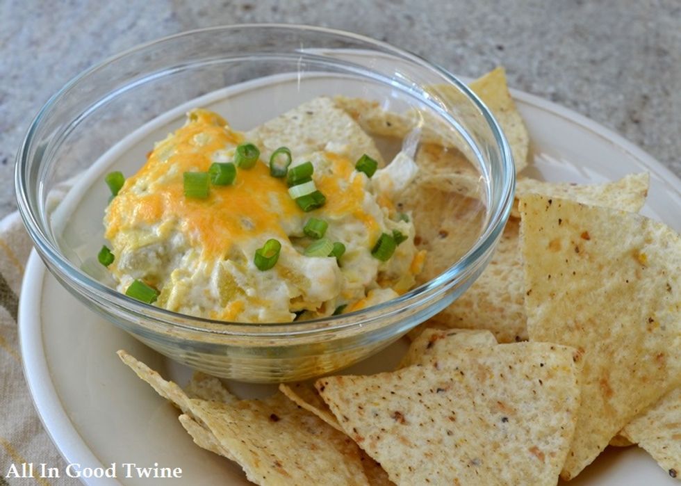 Preheat oven to 350°. Combine mayo, sour cream, artichoke hearts, green chilies, Parmesan cheese and 1/4 cup cheddar cheese. Pour mixture into an oven safe baking dish. Sprinkle the remaining 3/4 cup...