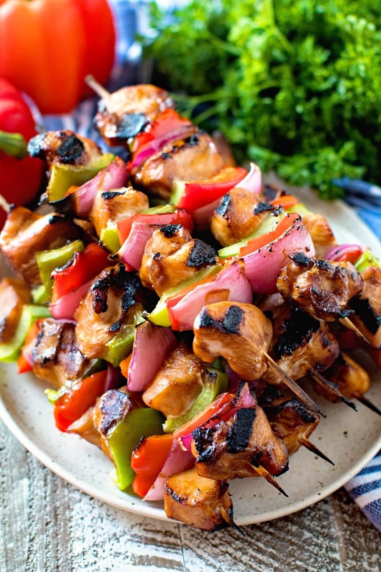 Tender, juicy chicken on skewers with peppers and onions make these Asian Chicken Skewers the perfect quick dinner recipe! They are also so delicious they can easily be served when you entertain!