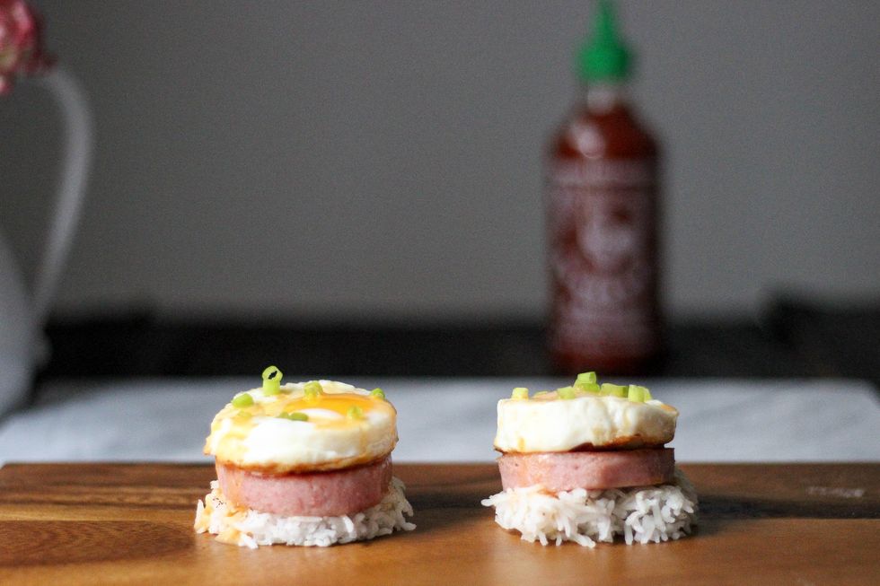 An asian-spin on the classic Eggs Benedict! I grew up eating Spam with eggs and rice and thought the flavors combined could make a unique and tasty eggs benedict. With the sriracha-hollandaise, a nice and spicy kick is added!