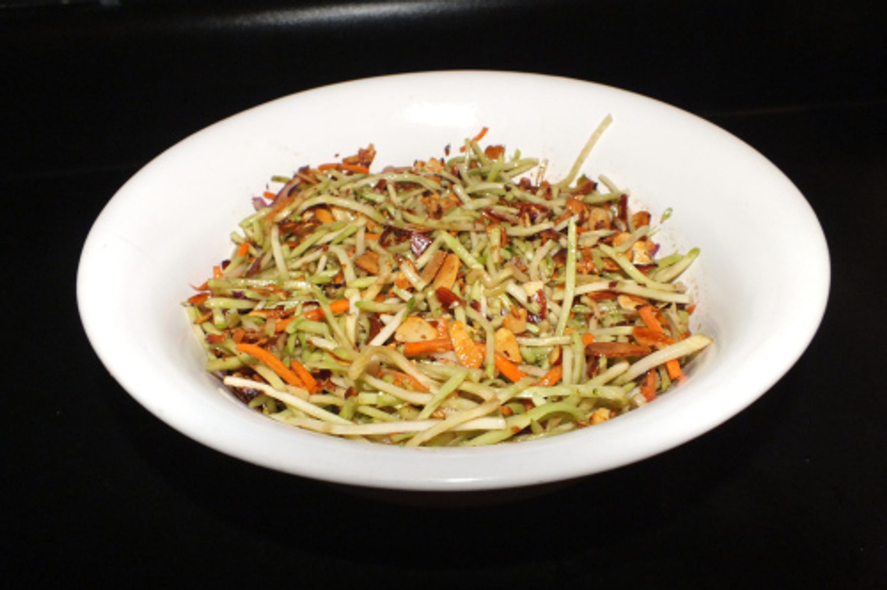 When there is a chill in the air I am always up for a bowl of soup. Somehow that doesn’t seem to fill my belly as much as I would like. So I usually have soup with a small salad. But honestly I get tired of any kind of lettuce really quick. A friend a few years back introduced me to broccoli slaw. I have never heard of it, nor was a very inclined to buy it until she served it to me with a bowl of white chicken chili. (Very similar to Lori’s chicken bean soup) It is just what it says, looks