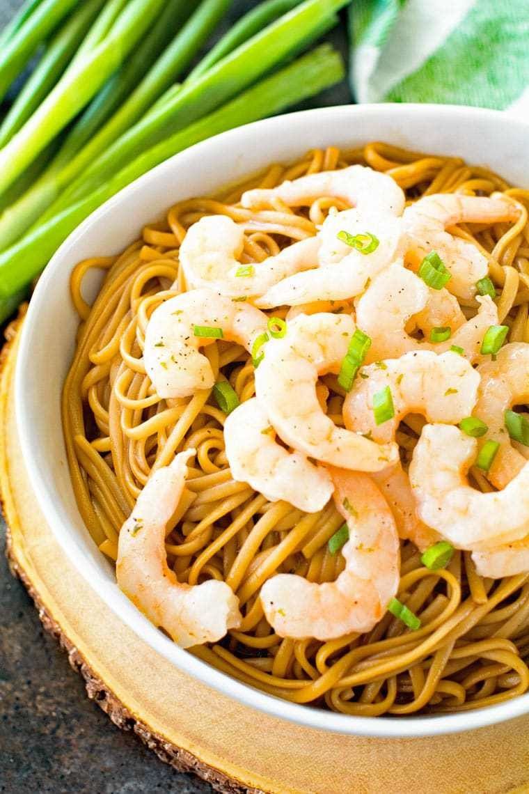 If you love Shrimp Scampi you are going to love this twist! This Asian Shrimp Scampi has your favorite buttery shrimp scampi, linguine noodles and it's tossed in an Asian flavored sauce! A great quick, dinner recipe!