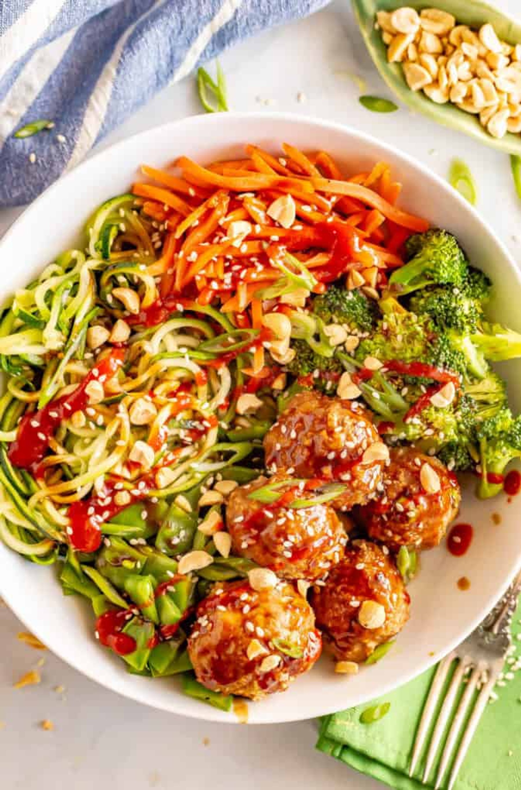 Asian turkey meatballs and veggies bowls - Family Food on the Table