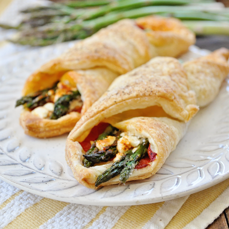 Asparagus Puff Pastry Bundles with Roasted Peppers & Goat Cheese