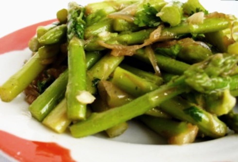 Lightly steam the asparagus until tender. Marinate in juices and spices 30 minutes.