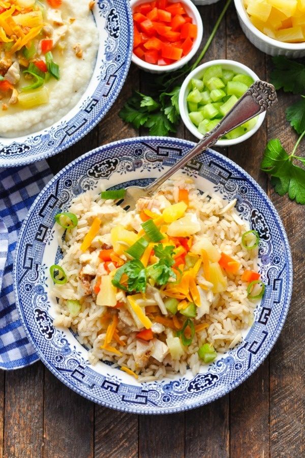 Add some fun to your next family meal with Aunt Bee's 20-Minute Hawaiian Haystacks! A simple chicken gravy is served over a bed of rice and finished off with all of your favorite toppings for a kid-friendly, healthy and easy dinner recipe!